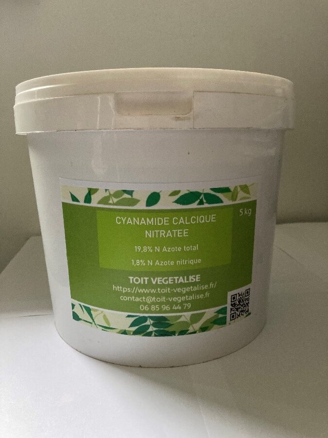 La cyanamide de chaux relève le PH du substrat et réduit le développement des mousses. Elle booste également les sedums. Appliquer au printemps en 2 x : une 1ère fois 20 g/m² et une seconde fois 2 semaines plus tard, 20 g/m².